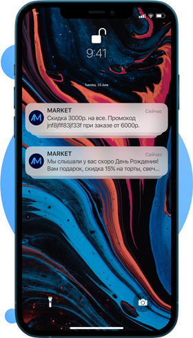 Ваше приложение будет всегда под рукой у клиента. Push-уведомления о новинках и акциях вернут до 67% покупателей.